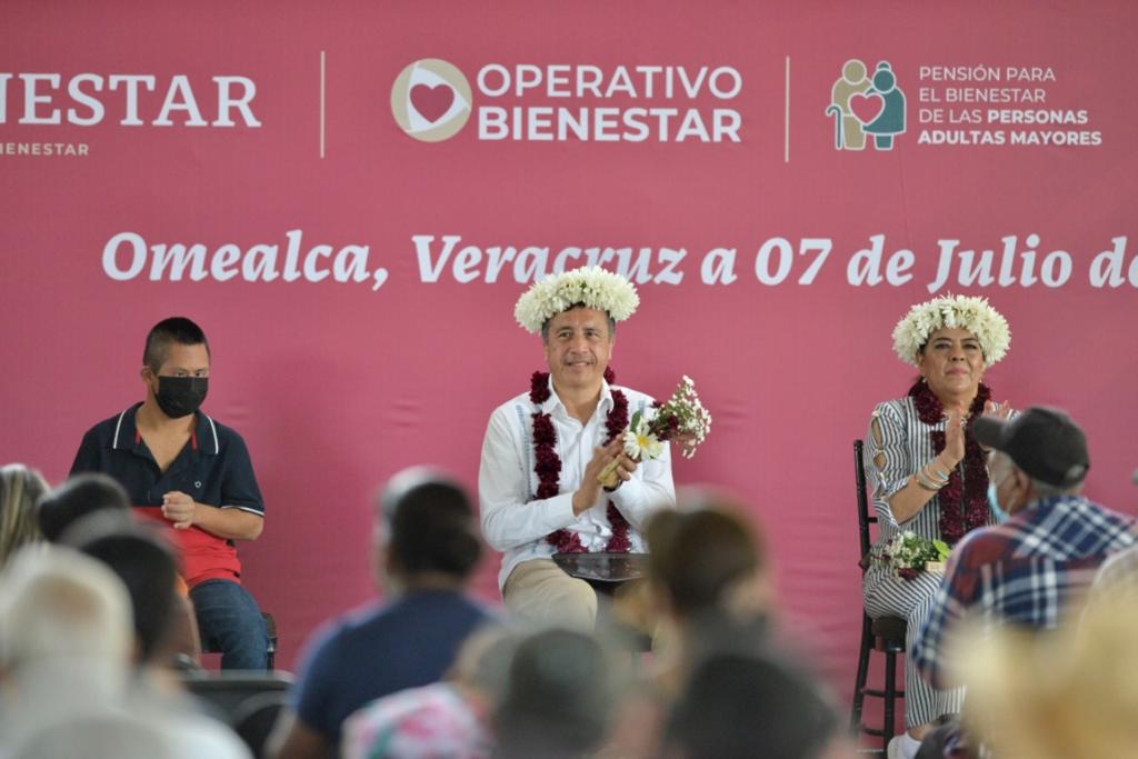 Omealca, Ver.- En presencia de adultos mayores y personas con discapacidad de este municipio, el gobernador Cuitláhuac García Jiménez aseguró que la población de 10 mil 741 localidades en Veracruz recibe la mano del presidente Andrés Manuel López Obrador mediante los programas de Bienestar.