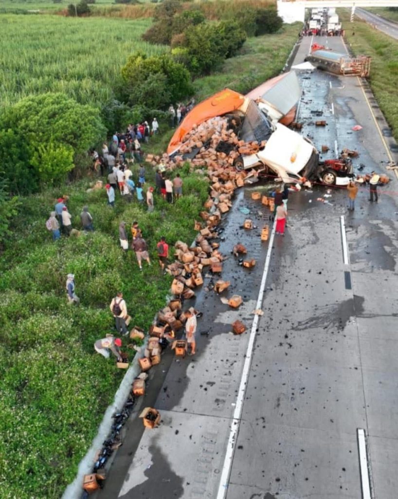 Tras el impacto, ambas unidades volcaron y bloquearon completamente los carriles con dirección al puerto de Veracruz.