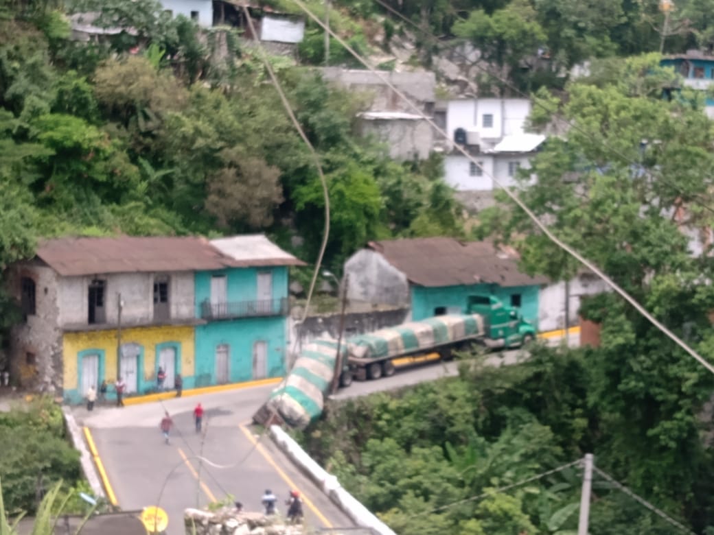 Atoyac, Ver. – La carretera estatal Córdoba-Paso del Macho se encuentra cerrada a la circulación debido a que el remolque de un tráiler está apunto de caer del puente de Atoyac.