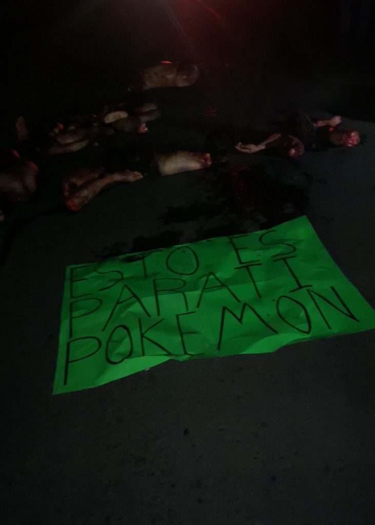 Entre los restos humanos fue dejada una narcocartulina.