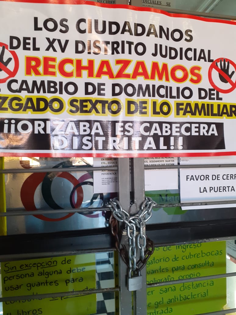Los abogados sellaron con candados la puerta del juzgado a la espera de que tengan el apoyo del Ayuntamiento orizabeño y sus peticiones las tomen en cuenta el Gobierno Estatal y autoridades federales.