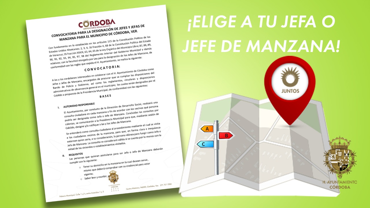 Córdoba, Ver. – Mediante una consulta ciudadana, la Dirección de Desarrollo Social del Ayuntamiento de Córdoba, realizará el proceso para la designación de 2,764 Jefas y Jefes de Manzana, lo que garantiza un desarrollo transparente para la elección de las personas encargadas de procurar que se cumplan las disposiciones del Bando de Policía y Gobierno, así como de reglamentos, circulares y disposiciones administrativas.