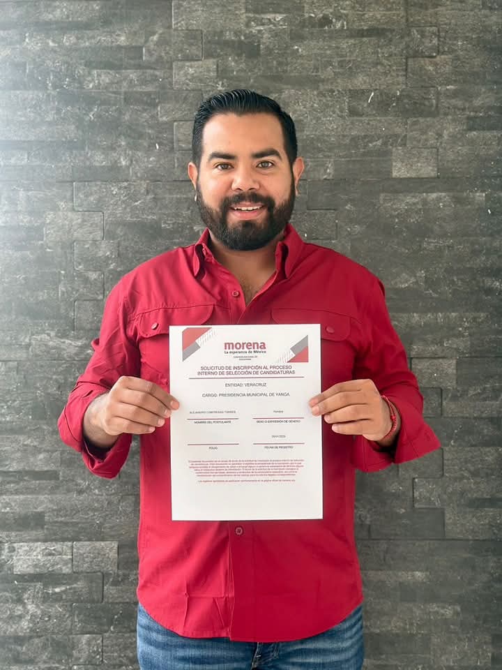 Yanga, Ver. – Con gran entusiasmo, Alex Contreras formalizó este día su registro como aspirante a la Presidencia Municipal de Yanga ante la Comisión de Procesos Internos de Morena.