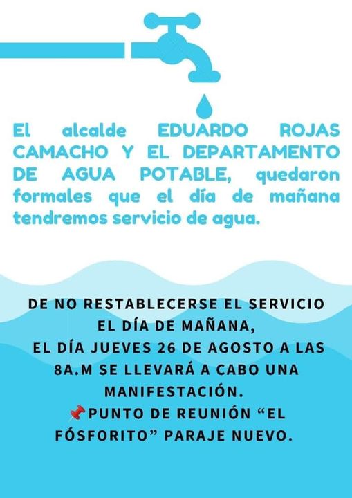 Los pobladores a través de las redes sociales lanzaron una convocatoria para manifestarse el día jueves, el caso de que el ayuntamiento no cumpla con su promesa de restablecer el servicio.