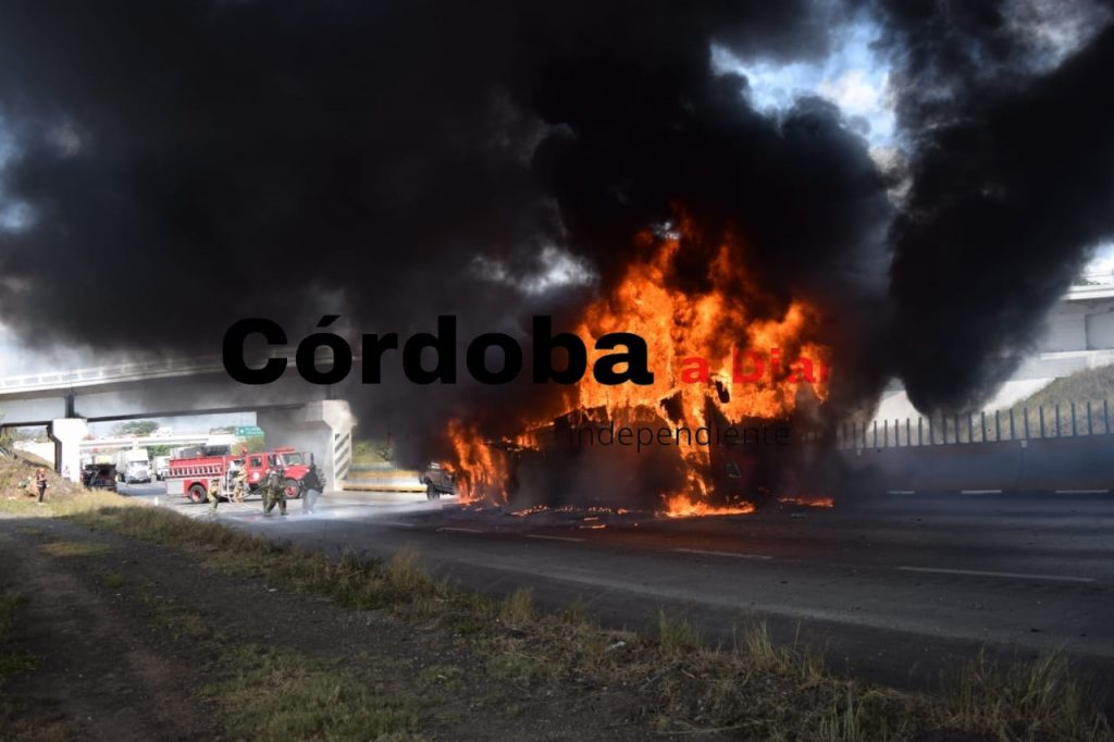 Amatlán, Ver. – Momentos de terror vivieron pasajeros cuando el autobús de la línea ADO en que viajaban se incendió tras accidentarse sobre la autopista Veracruz-Córdoba.