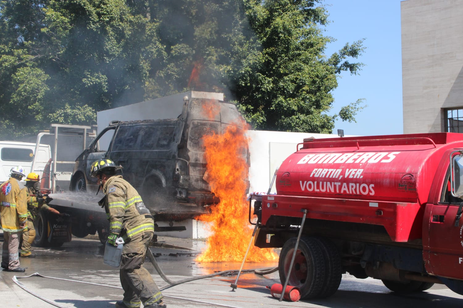 Córdoba, Ver.– La tarde de este jueves se registró una intensa movilización de cuerpos de auxilio luego de que una camioneta tipo van comenzara a incendiarse cuando era transportada en la plataforma de una grúa, sobre la calzada Garza Sada, en el tramo que comunica a Córdoba con Fortín.