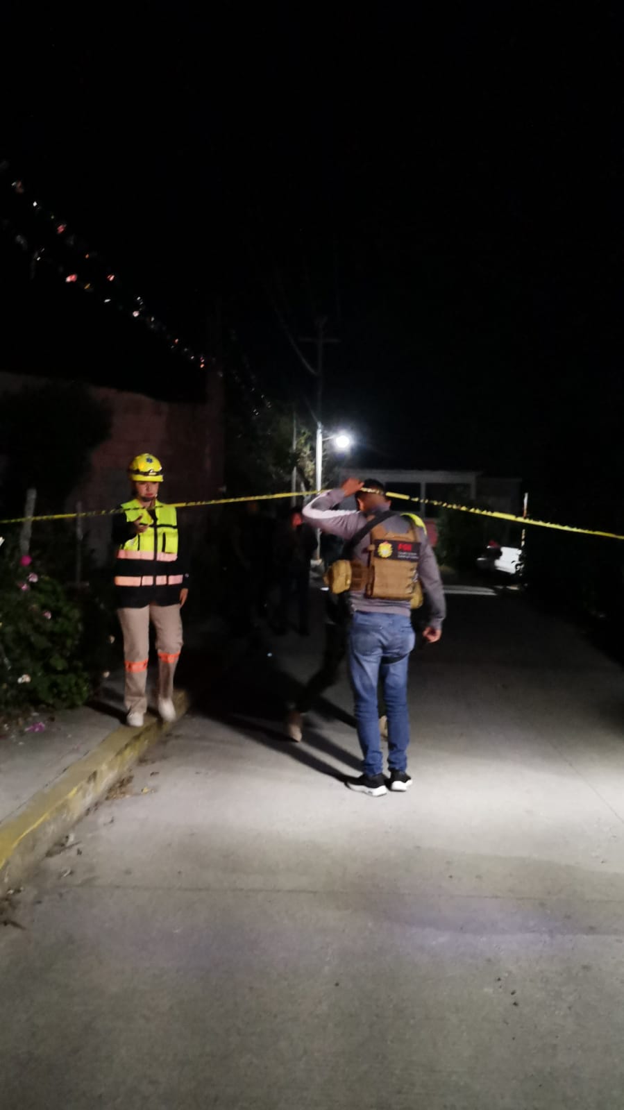 Elementos de seguridad de distintas corporaciones acordonaron la zona y resguardaron la escena del crimen mientras peritos forenses realizaban el levantamiento del cuerpo.