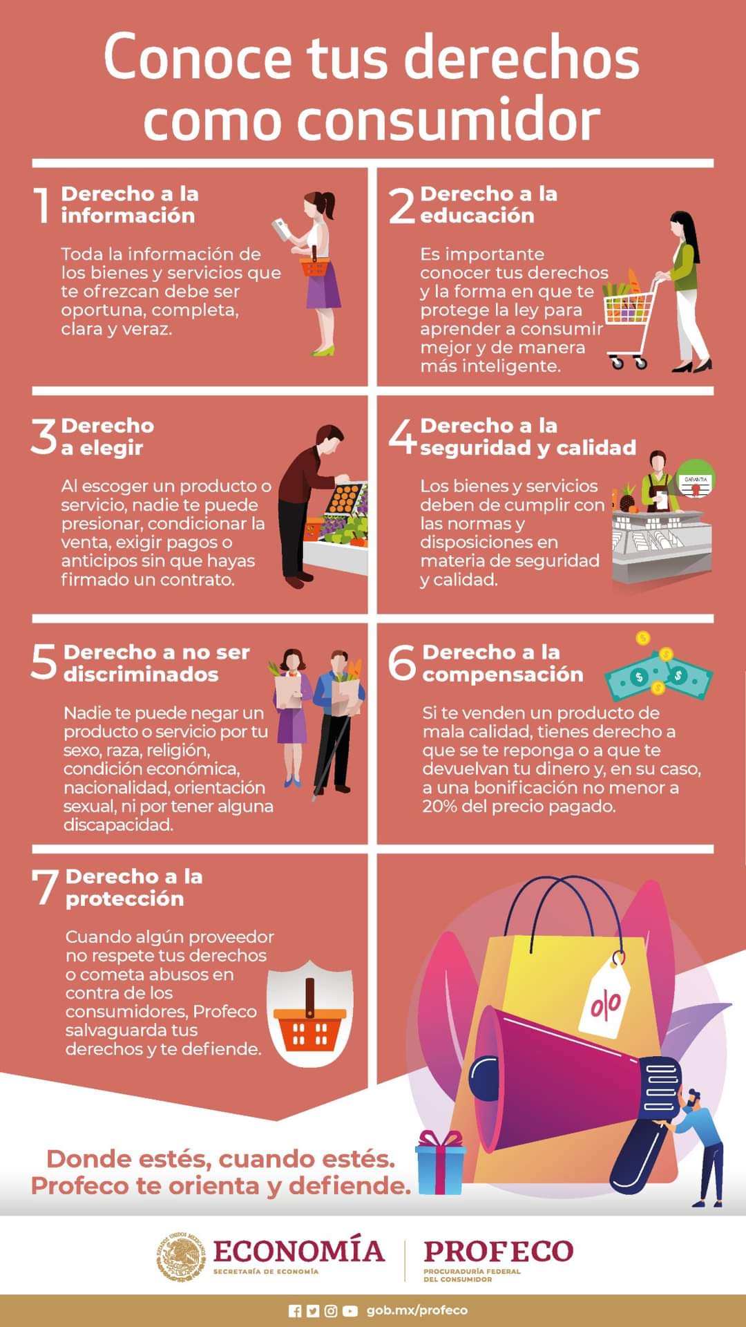 El derecho a la educación, a elegir, a la seguridad y calidad, a no ser discriminados, a la compensación, a la protección y a la información, forman parte del decálogo de derechos básicos del consumidor y Profeco los hará valer.