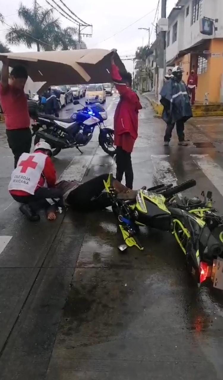 Tras el impacto, la pareja de motociclistas cayó hacia el piso; fueron paramédicos de la Cruz Roja y Samuv quienes atendieron a los heridos y los trasladaron hacia un Hospital.