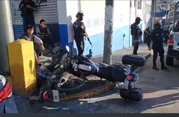 Testigos dijeron que el oficial de la Policía quien circulaba en una motocicleta oficial fue impactado por una motocicleta italika donde viajaban dos jóvenes.