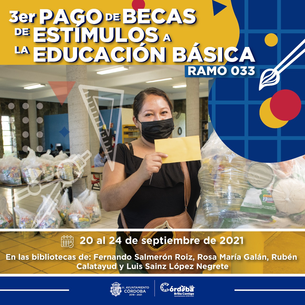 Córdoba, Ver. – Del lunes 20 al viernes 24 de septiembre, el Ayuntamiento de Córdoba realizará el pago del tercer trimestre de las becas de Estímulos a la Educación Básica Ramo 033 para beneficio de 365 estudiantes de primaria y secundaria.