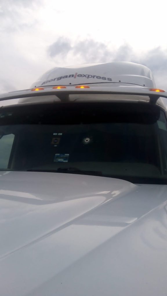 El trailero resultó herido de la cabeza después de que una bala le rosara el cráneo.