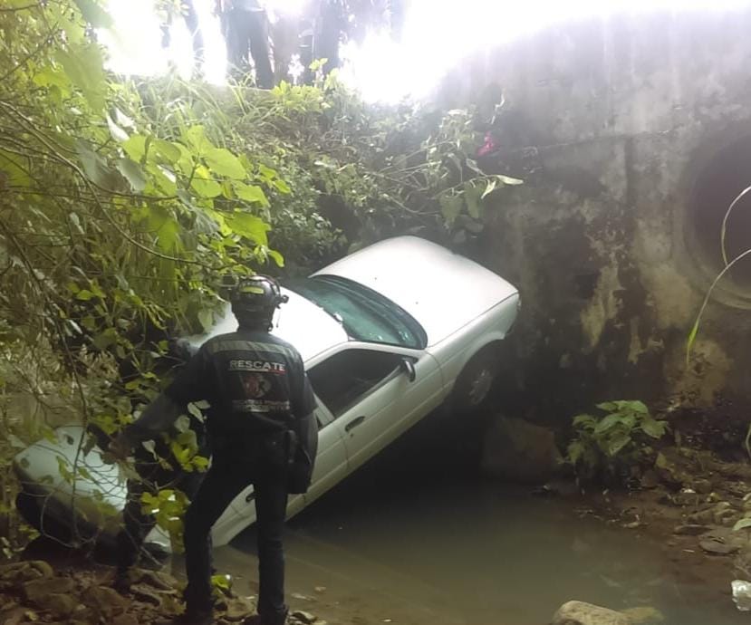 Fortín, Ver. – ¡Sano y salvo! Así salió un hombre quien tras conducir su automóvil sobre la carretera estatal Calzada Morelos- Los Lienzos perdió el control y cayó hacia un arroyo.