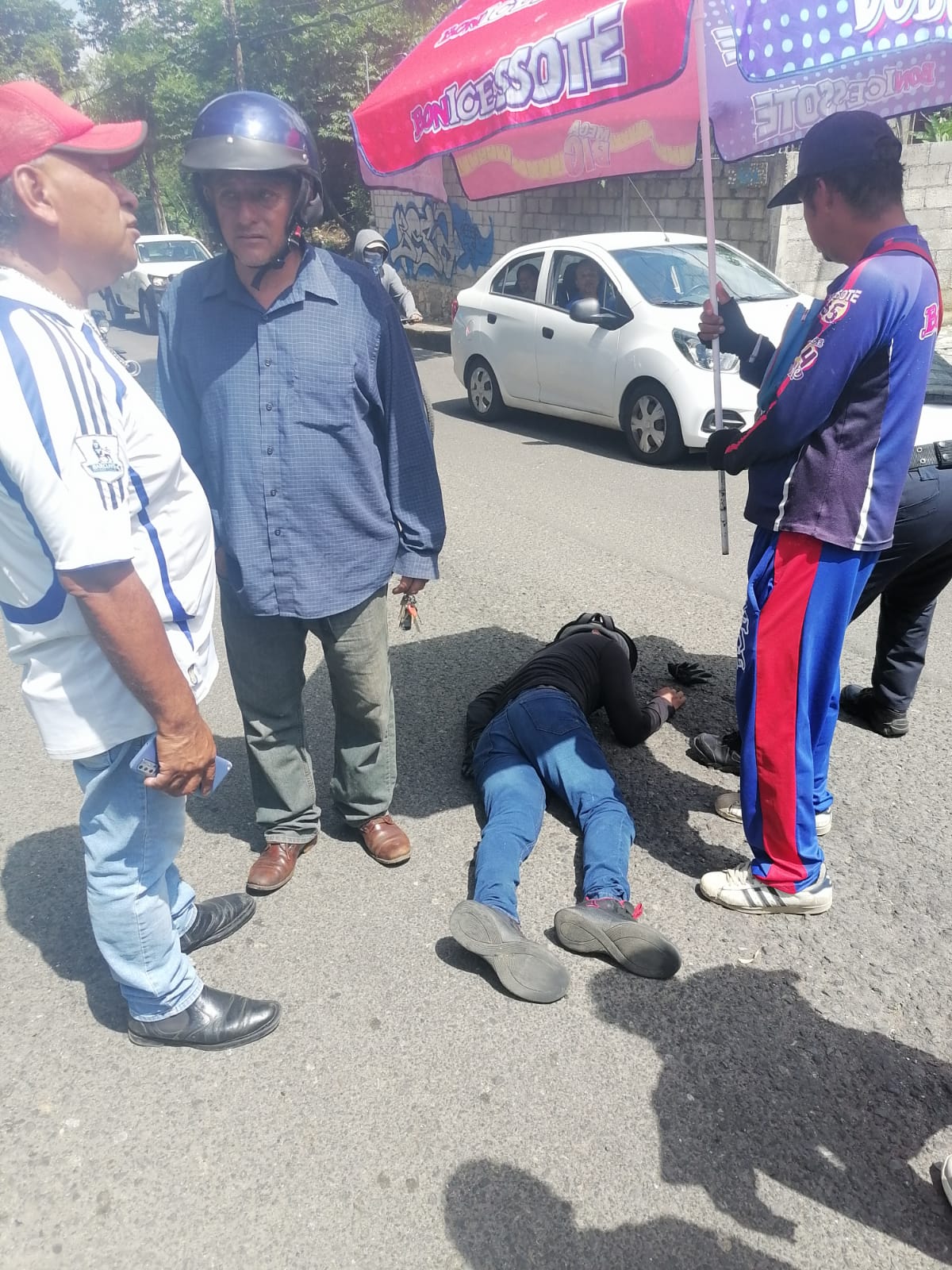 El accidente ocurrió cuando el motociclista perdió el control de su vehículo cuando cayó aun bache, resultando en un derrape que le causó lesiones.