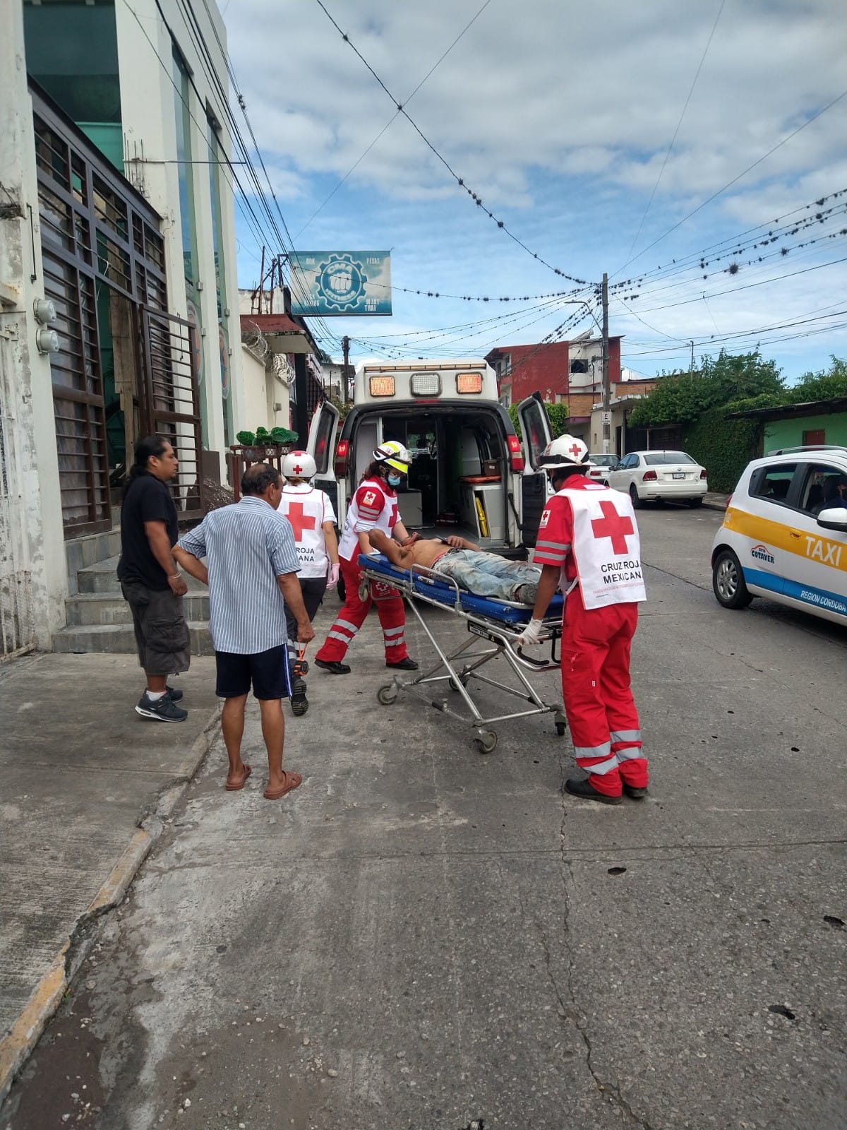 Córdoba, Ver. – Un trabajador de la construcción fue auxiliado por paramédicos de la Cruz Roja y trasladado de emergencia a un hospital para atención médica, tras sufrir una caída de aproximadamente dos metros y medio.