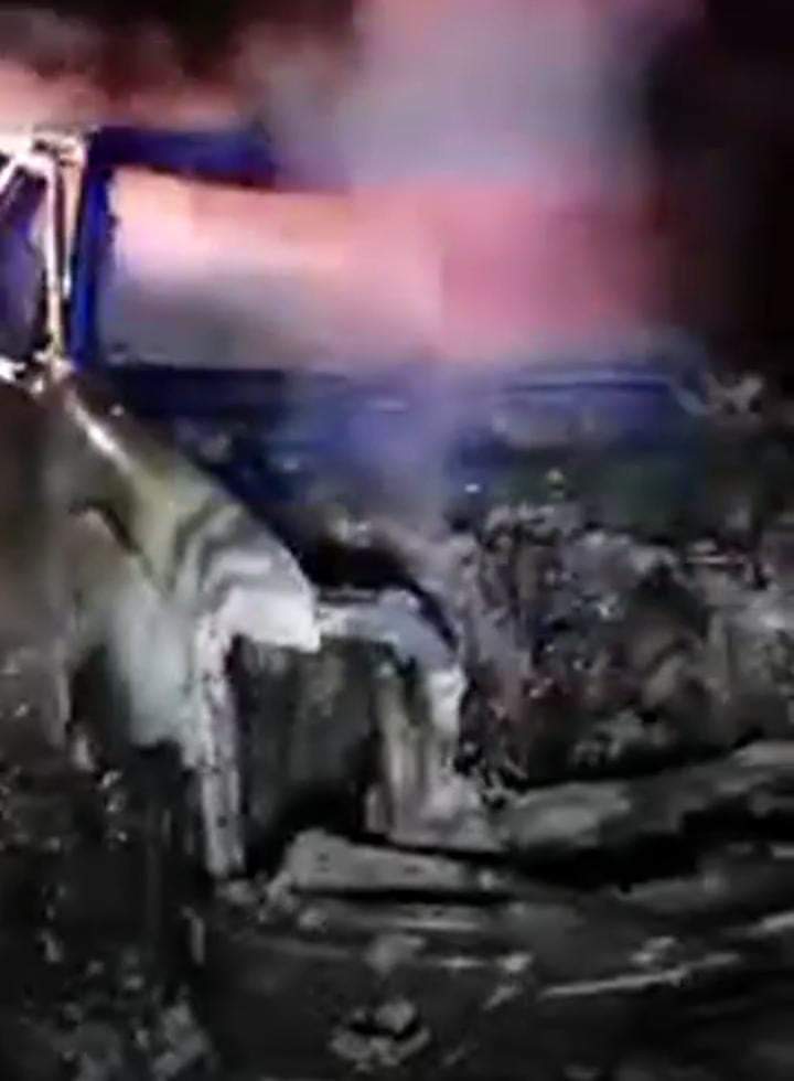 Tras apagar el fuego, autoridades confirmaron que en el interior de la unidad Ford estaban los cuerpos totalmente calcinados.