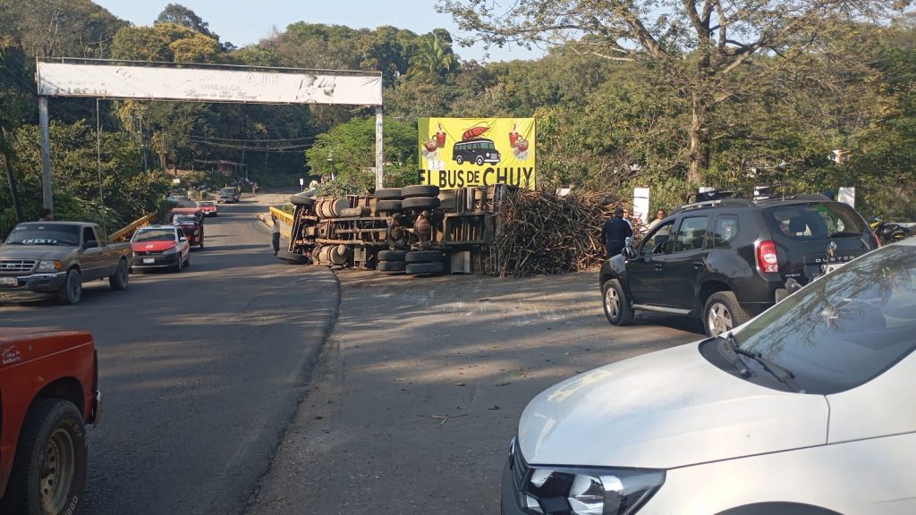 Camión cañero vuelca en la carretera Omealca–Tezonapa