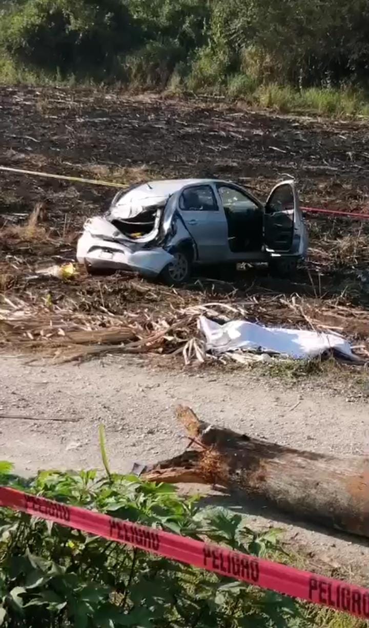 De acuerdo con testigos, la unidad Golf con placas de circulación YGL-385-A del Estado, salió del camino debido a que su conductor perdió el control y terminó volcado sobre un cañal.