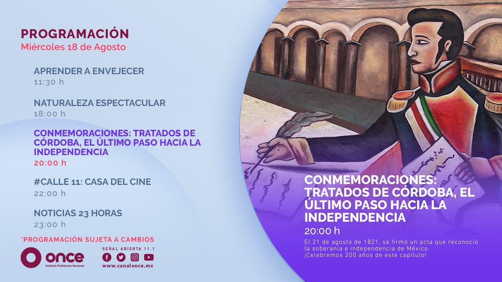 Canal Once, especializado en generar contenidos audiovisuales culturales e innovadores que reflejen la diversidad social de nuestro país, promueve la importancia histórica de los Tratados de Córdoba con la participación de investigadores e historiadores como Rafael de la Mora, Carlos Vergara y Adriana Balmori.