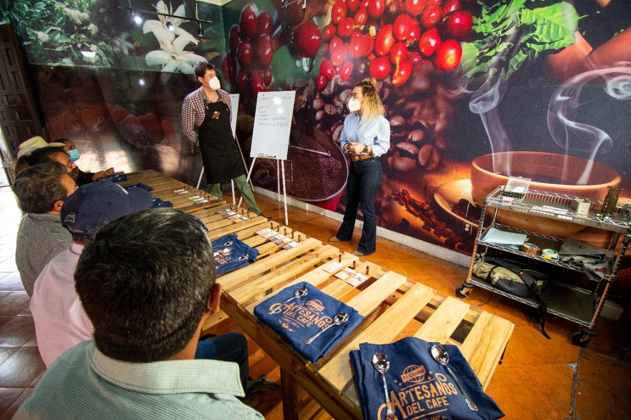 Córdoba, Ver.- Como parte de la profesionalización a cafeticultores, la coordinación de Turismo eligió a 12 productores de café de la Sierra del Gallego que fueron capacitados por Alejandro Rodríguez, Q Grader (certificado de catadores que se da a expertos) y director comercial de la cadena de cafeterías asturianas El Globo.