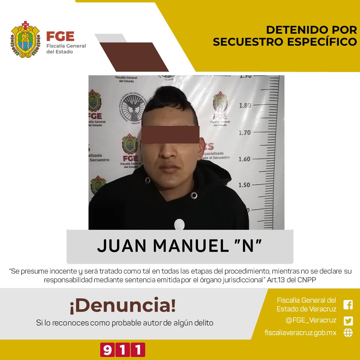 Mediante un operativo coordinado, el personal operativo de la UECS, logró la detención Juan Manuel “N”, por su probable responsabilidad en el delito de secuestro Específico de una víctima de sexo femenino.