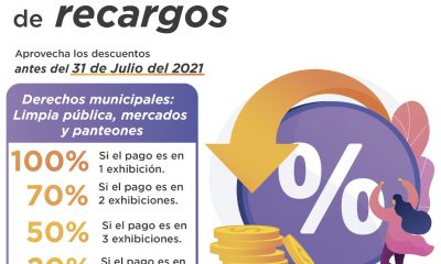 La Tesorería Municipal precisó que los descuentos son únicamente en recargos aplicados a los derechos municipales como cementerios, mercados y servicio de limpia pública.