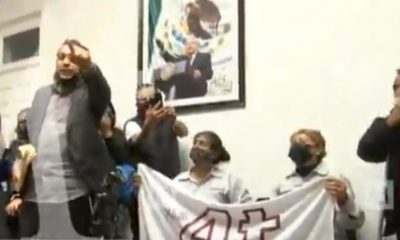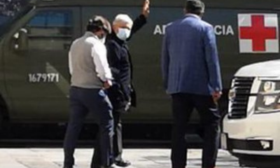 El presidente López Obrador, quien está aislado por su recuperación del covid-19, fue captado caminando en Palacio Nacional y portando un cubrebocas.