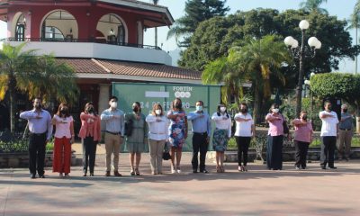 Escuelas desde el nivel preescolar hasta bachillerato participaron en este acto cívico en la explanada del parque Lázaro Cárdenas.