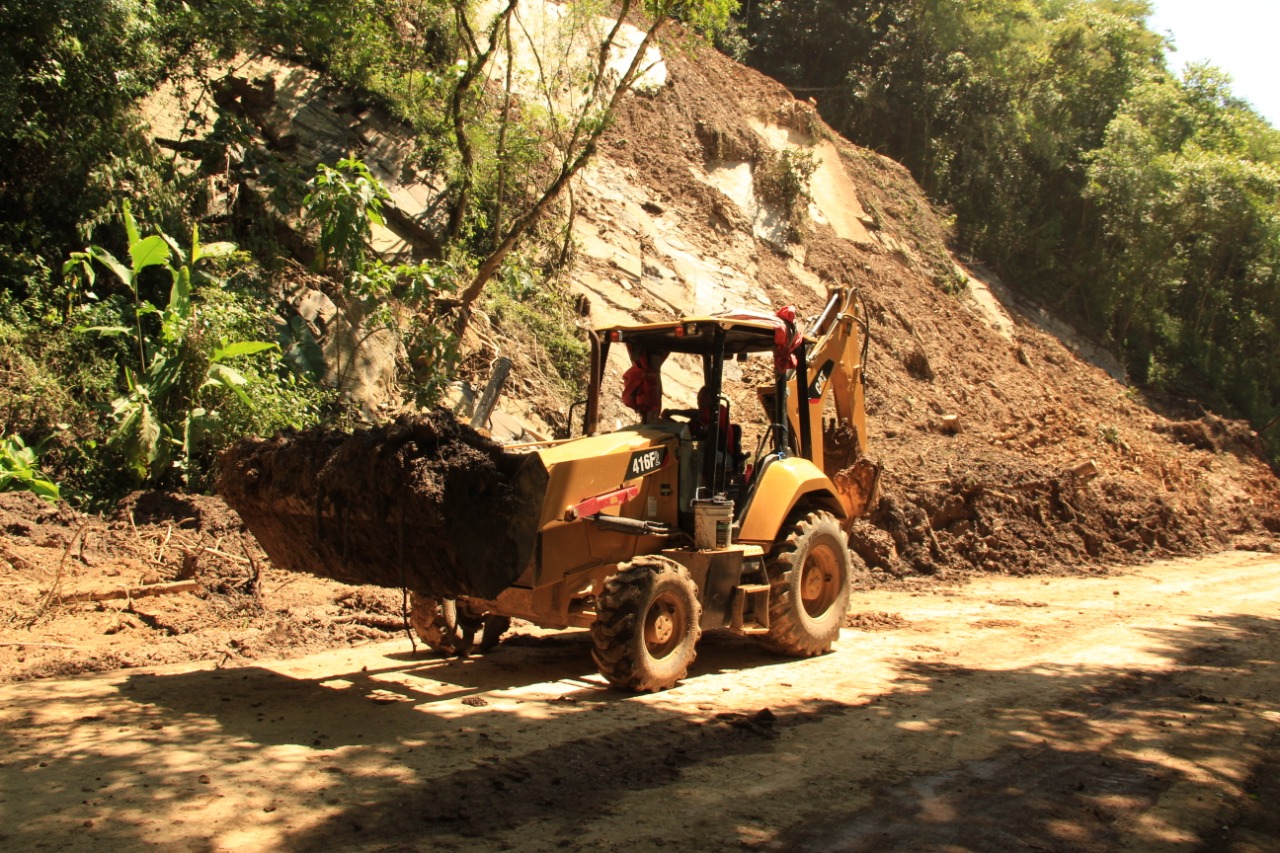 Ixtaczoquitlán, Ver. Con ayuda de maquinaria personal del Ayuntamiento de Ixtaczoquitlán trabaja en la limpieza de la carretera Cumbre de Tuxpango – Campo Chico tras los...