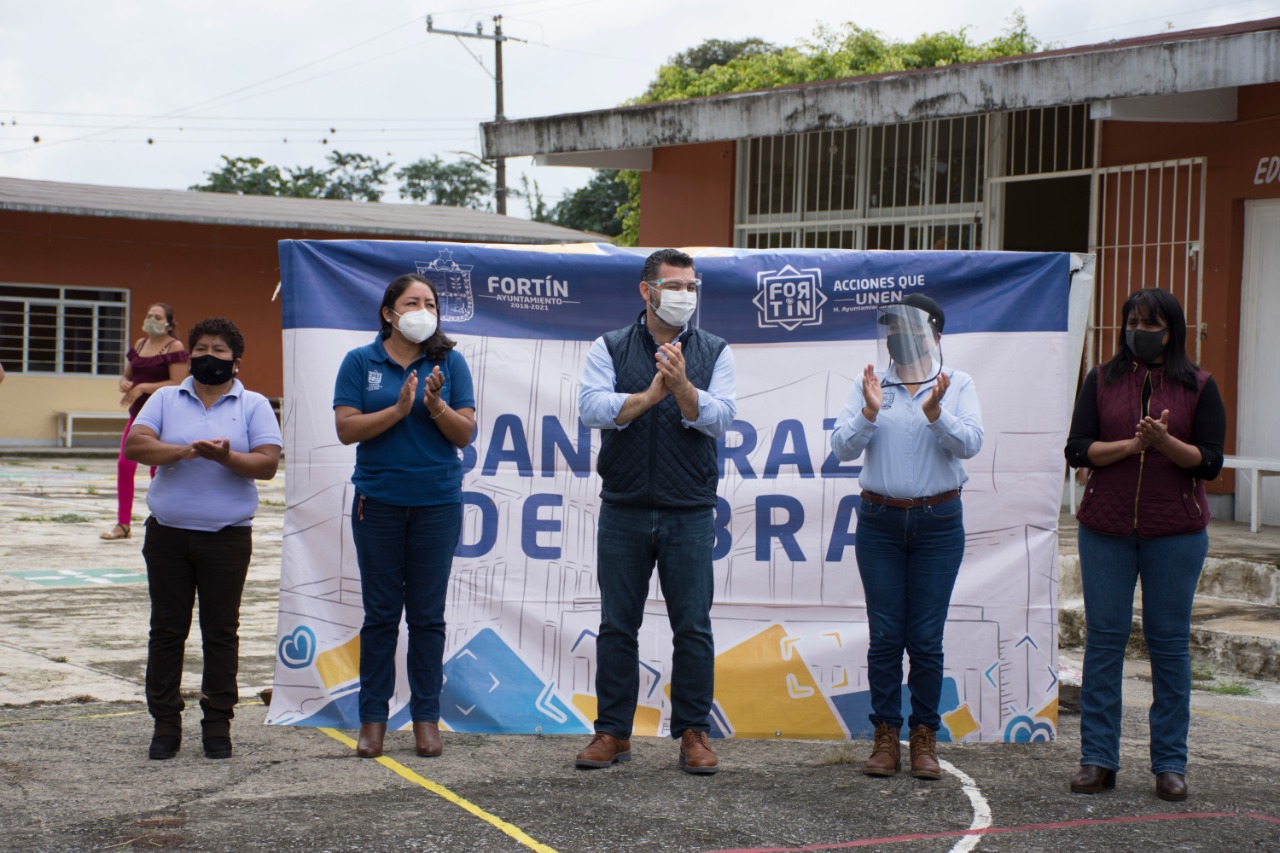 Fortín Ver..- Este martes iniciaron los trabajos de construcción del techado de la cancha de la Escuela Primaria Basilio Badillo de la comunidad de Santa Lucía...