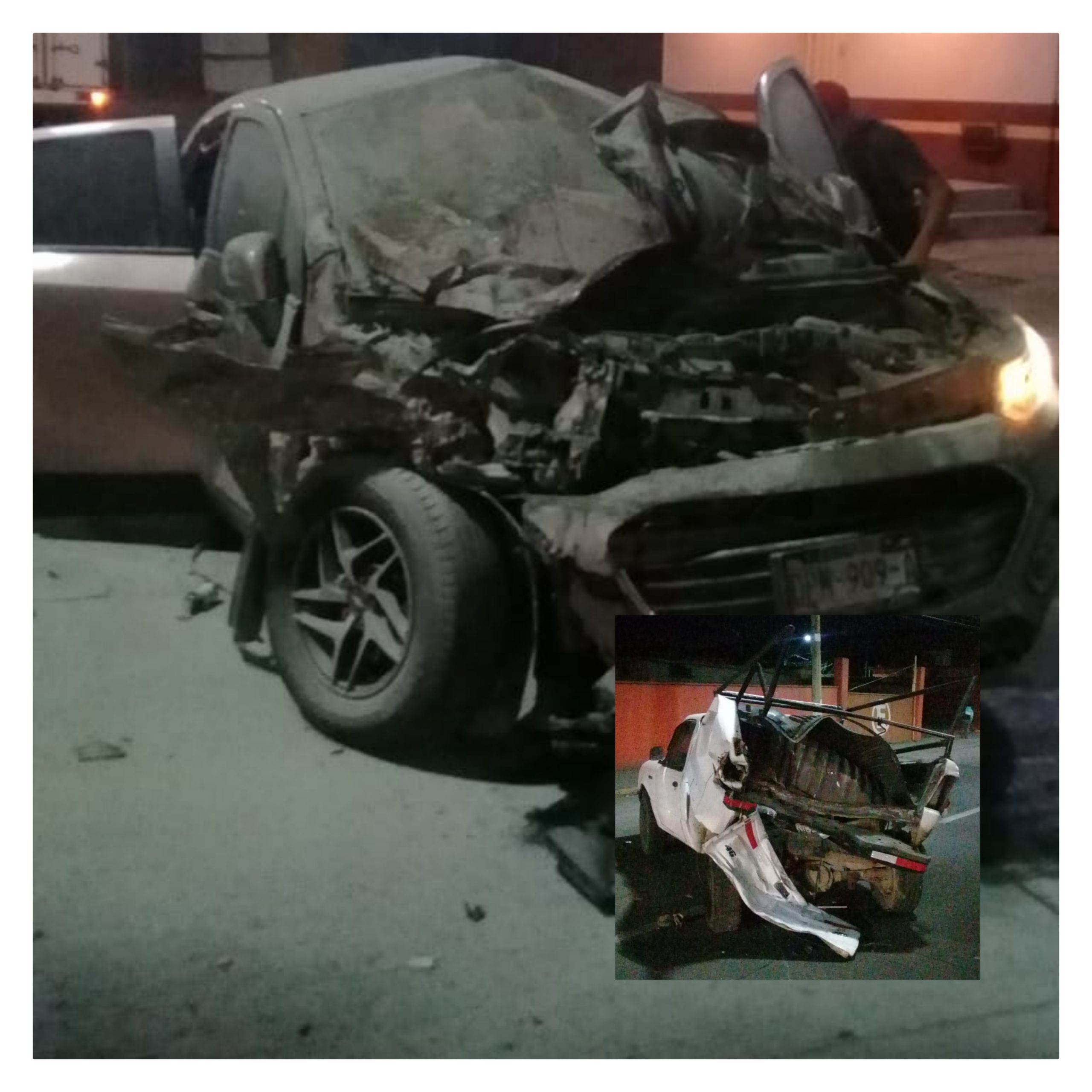 En el lugar encontraron una camioneta de lujo totalmente destrozada y otra camioneta de redilas dañada de la batea.