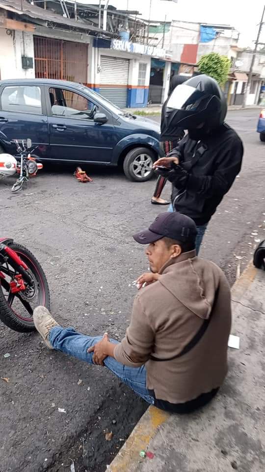 Córdoba, Ver. – El conductor de una motocicleta resultó con varios golpes en el cuerpo luego de chocar su unidad contra un vehículo que salía de un garaje.