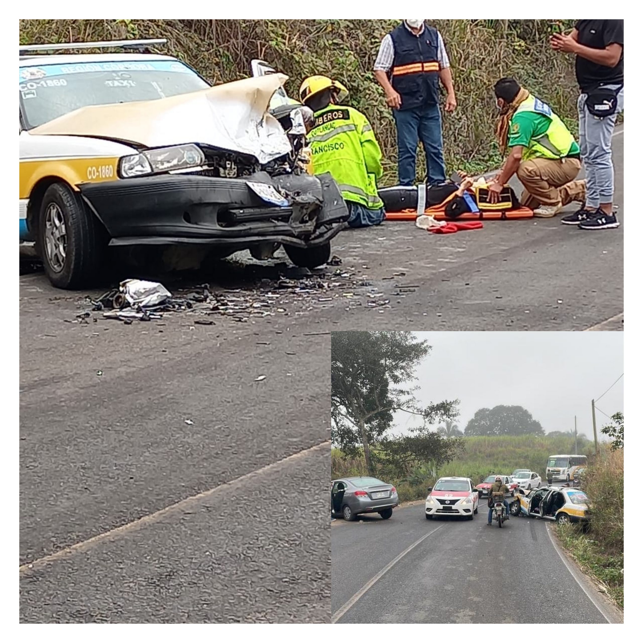 Cuitláhuac, Ver. – Una persona resultó herida durante un choque frontal entre un taxi de Córdoba y un vehículo particular.