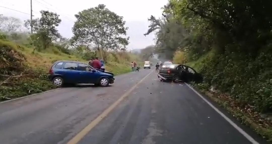 Coscomatepec, Ver. – Un choque frontal entre dos automóviles dejó un saldo de al menos tres personas heridas.