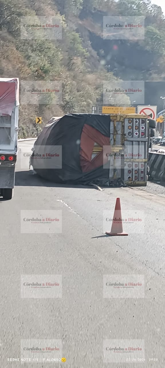 Finalmente, se registra la volcadura de otra unidad de carga en el mismo tramo, generando que la circulación vehicular se vea afectada con dirección de Puebla a Veracruz, debiendo manejar con las debidas precauciónes.