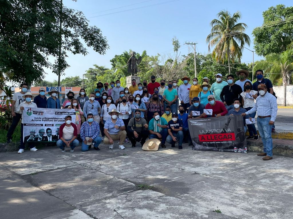 Cuitláhuac, Ver.- Grupo de ciudadanos voluntarios participan activamente en la difusión de la Consulta ciudadana para apoyar el juicio contra los ex presidentes mexicanos, por lo que este día el brigadeo fue en esta ciudad durante la mañana.