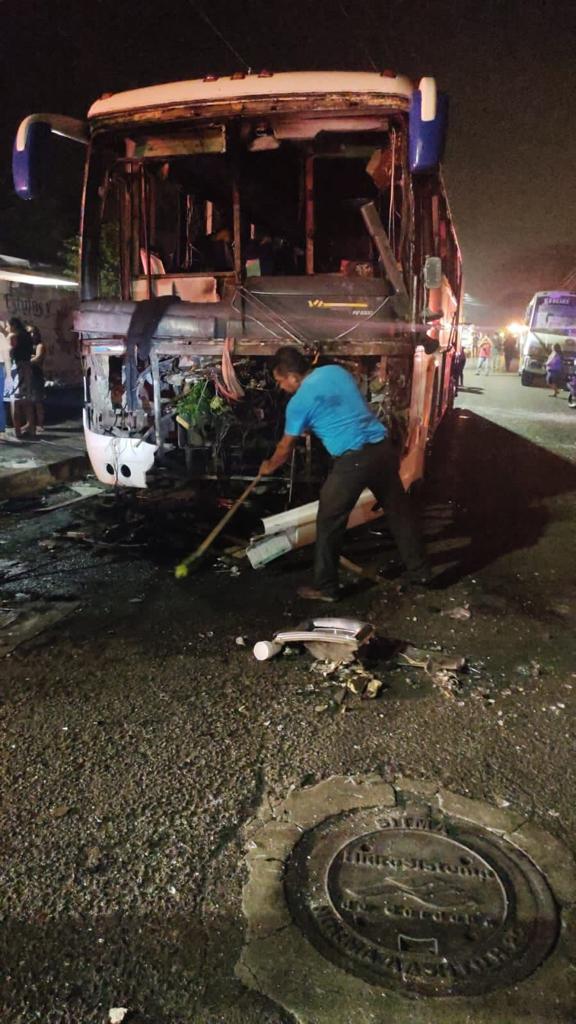 Un video mostró el momento en que peregrinos lanzaron un explosivo y este cayó dentro del autobús que circulaba sobre la carretera Córdoba-Narajal, causando un enorme estadillo y posteriormente el incendio.