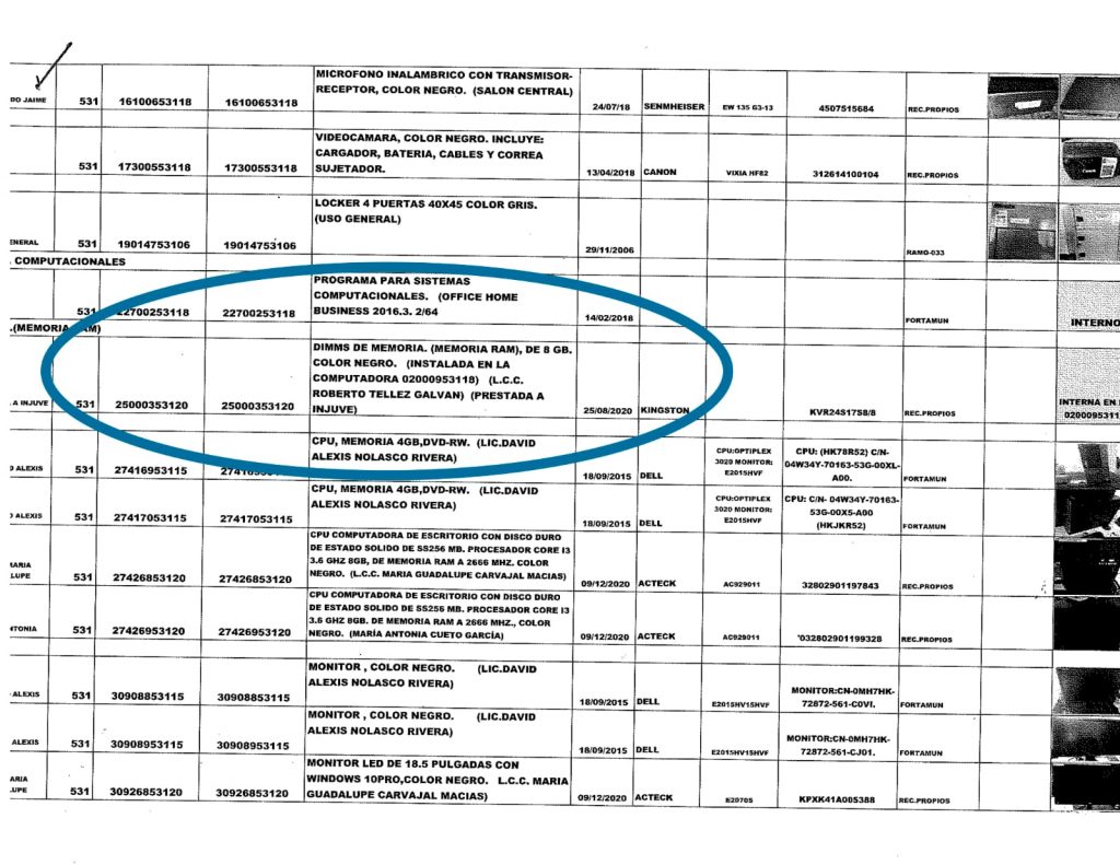 Según las observaciones a la Entrega de la Administración Municipal 2018-2021, el ex Jefe de Información, Roberto Téllez Galván, simuló el “préstamo” al Instituto de la Juventud de una computadora ALIENWARE Modelo D23M comprada en $50,103.47, misma que no apareció en dicha dependencia y se presume quedó en sus manos.