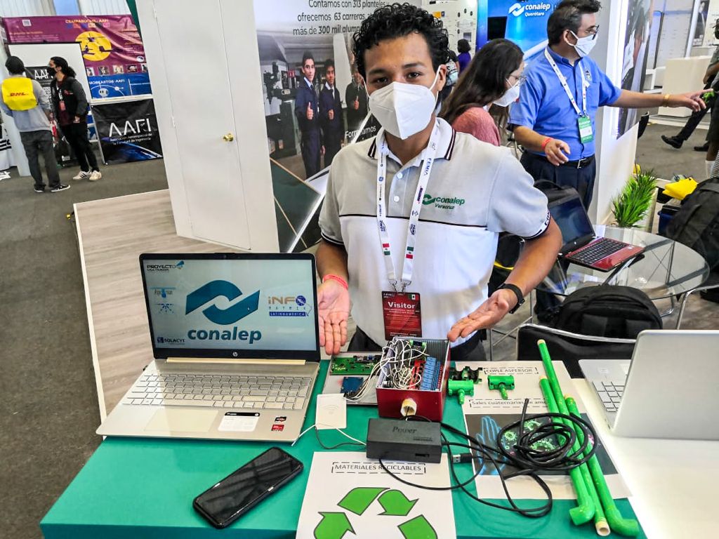 Santa Lucía, Zumpango, Edo de México. –  Gracias a sus logros con el proyecto Arcosán en el concurso internacional INFOMATRIX, el alumno Jesús Eduardo Méndez Oviedo y el docente Arturo Pimentel Murguía, de Conalep Córdoba 338, participan con éxito en la  Feria Aeroespacial de México 2021, recientemente inaugurada por el presidente de la República Mexicana, Andrés Manuel López Obrador.
