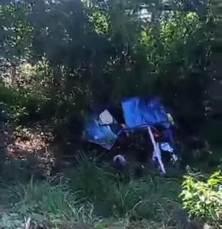 Una de las unidades cayó al fondo de un barranco; en ella viajaban una niña y un hombre adulto.