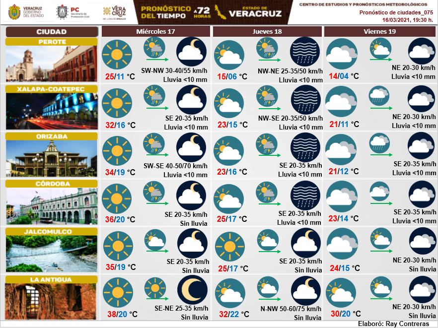 La dependencia informó que entre esta tarde-noche a mañana miércoles se espera una Surada con rachas de 75 a 95 kilómetros por hora (km/h) en la región de los Tuxtlas y entre Jesús Carranza-Acayucan.