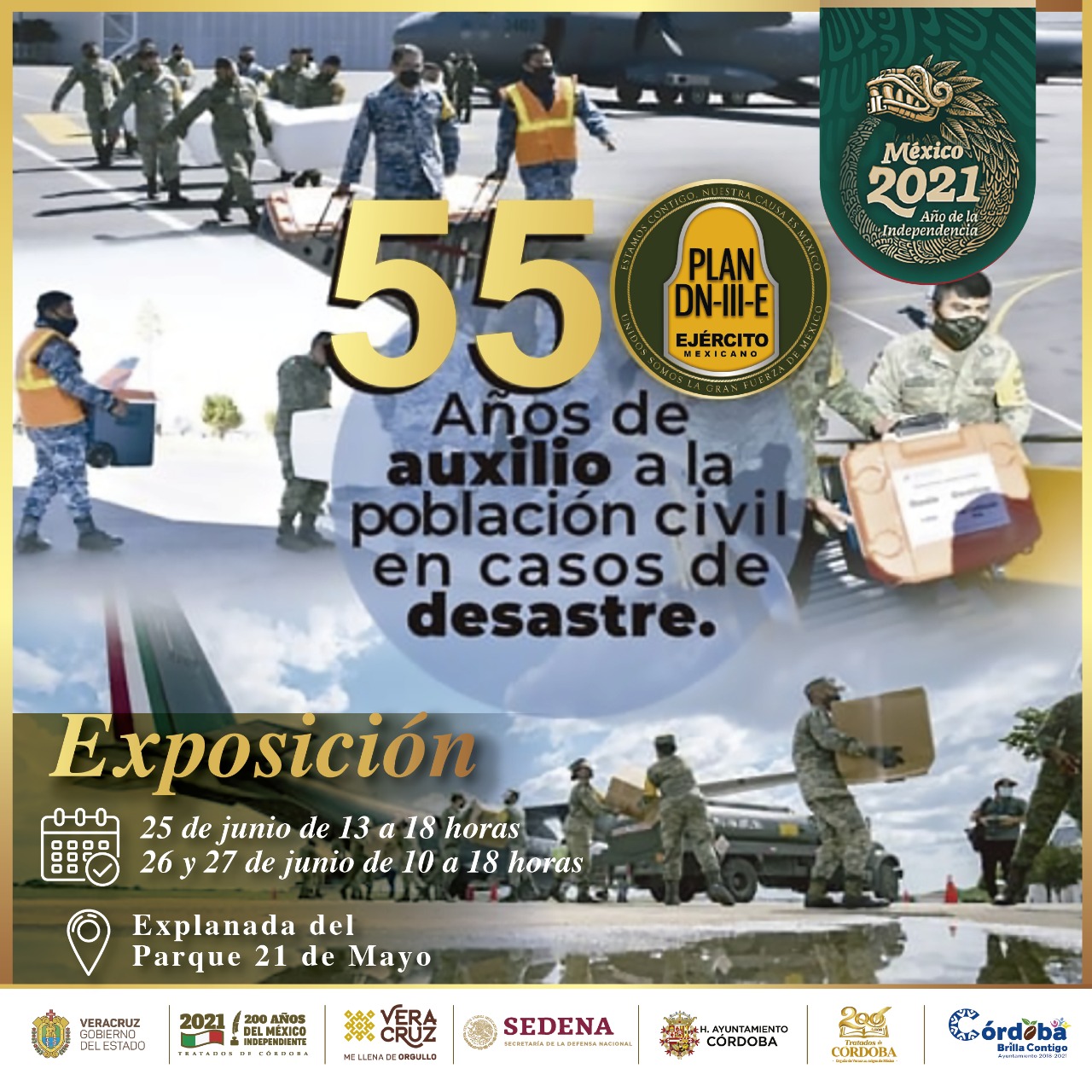 Córdoba, Ver. – Como parte de las actividades con motivo de la conmemoración del bicentenario de la firma de los Tratados de Córdoba, la Secretaría de la Defensa Nacional (SEDENA) instalará en el parque 21 de Mayo la exposición fotográfica por el 55 aniversario de la implementación del Plan DN-III-E.