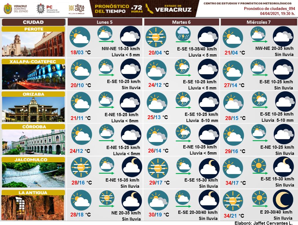 Córdoba, Ver. – La semana iniciará con despejado a medio nublado, precipitaciones vespertinas a nocturnas en montaña y algunas matutinas en costa.