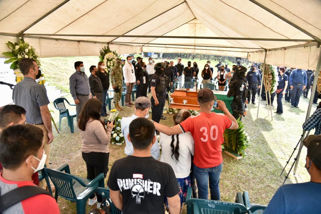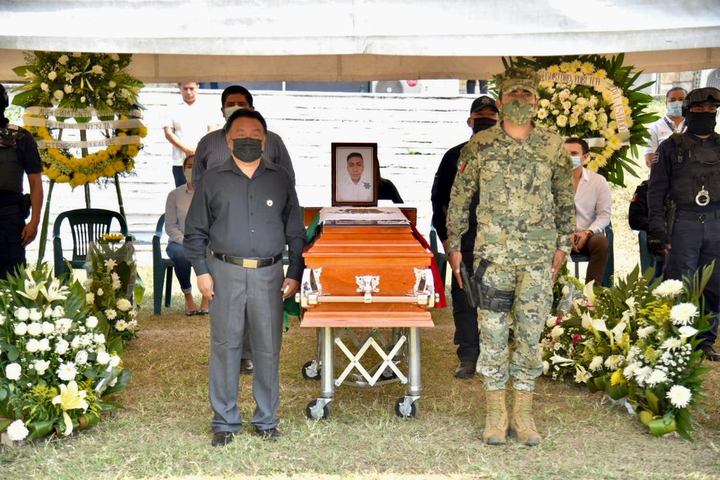 En la ceremonia de cuerpo presente en las instalaciones del Mando Único, el Alcalde y funcionarios dieron el pésame a la madre del elemento de 25 años, Guadalupe Oltehua Apale, a su padre Epifanio Zepahua Juárez y a sus familiares.