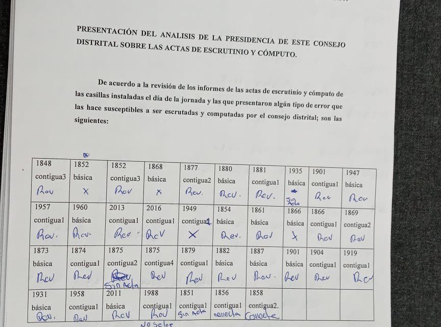 La denuncia la acompañó con un documento oficial donde el Consejo Distrital admite que hay inconsistencias en actas de escrutinio y cómputo donde se deberá hacer un recuento.