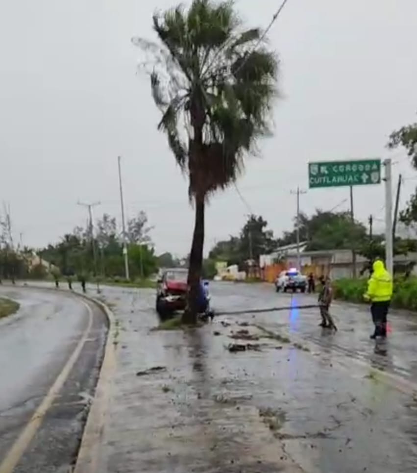 Cuitláhuac, Ver. – El exceso de velocidad y el piso mojado, fueron la combinación perfecta para que un conductor perdiera el control de su camioneta y chocara contra una luminaria.
