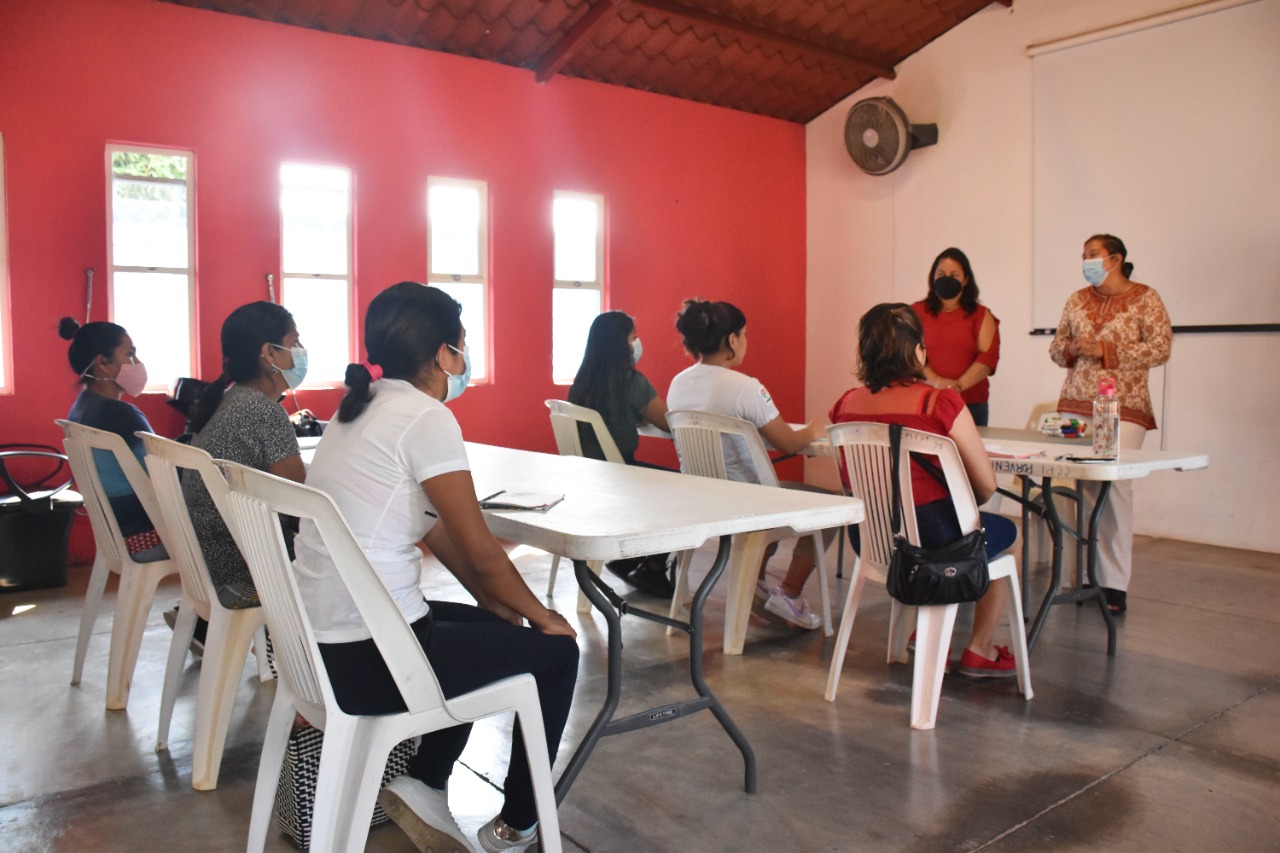 Al curso asisten mujeres de las comunidades del Porvenir, Berlín, San Antonio Padua, San Matías los Mangos, respetando las medidas sanitarias, como uso de cubrebocas, gel antibacterial y guardando la sana distancia.