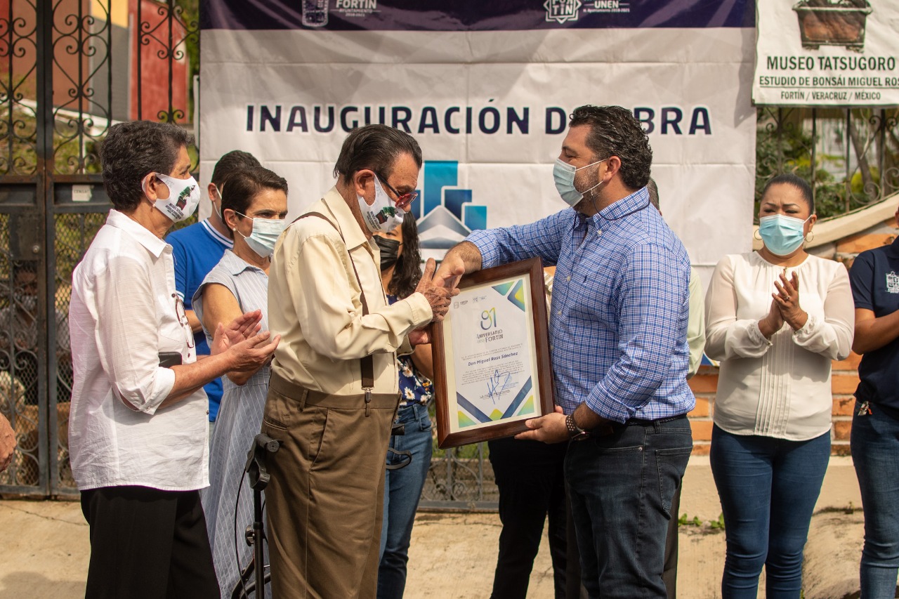 Dentro del evento simbólico encabezado por Toño Mansur en las inmediaciones del “Museo del Bonsái”, se contó además con la presencia de sus hijas Lola y Mary Ross, así como de los integrantes del Museo Tatsugoro, quienes celebraron se realizara un merecido reconocimiento en vida a la trayectoria de Don Miguel y la aportación que ha realizado al turismo de la ciudad al edificar en Fortín el museo más importante de su tipo en México y Latinoamérica, siendo un referente cultural y artístico que ha contribuido a la reactivación del desarrollo económico del municipio.
