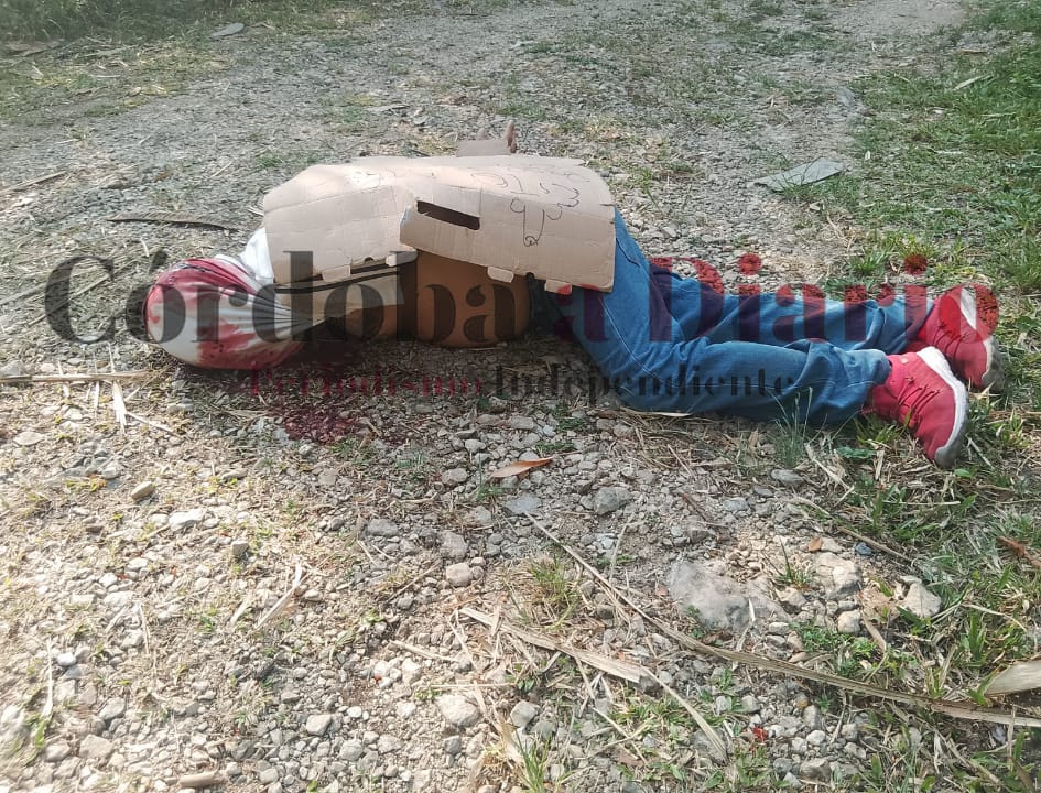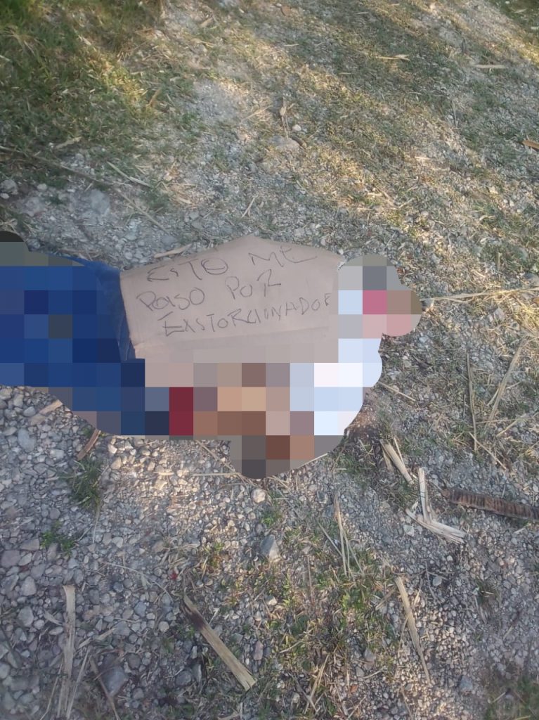 “Esto me pasó por extorsionador”, se lee en un pedazo de cartón que le dejaron al cuerpo.