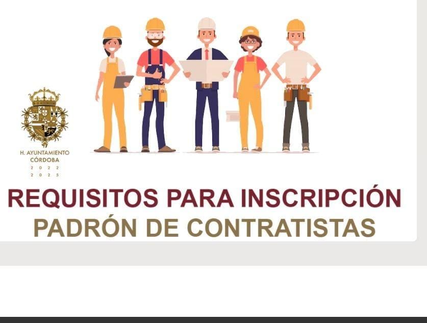 Córdoba, Ver.- El Ayuntamiento de Córdoba publicó la convocatoria para la Inscripción al Padrón de Contratistas, la cual está abierta para ciudadanos y empresas que deseen participar para la realización de obras públicas y servicios relacionados con ellas.